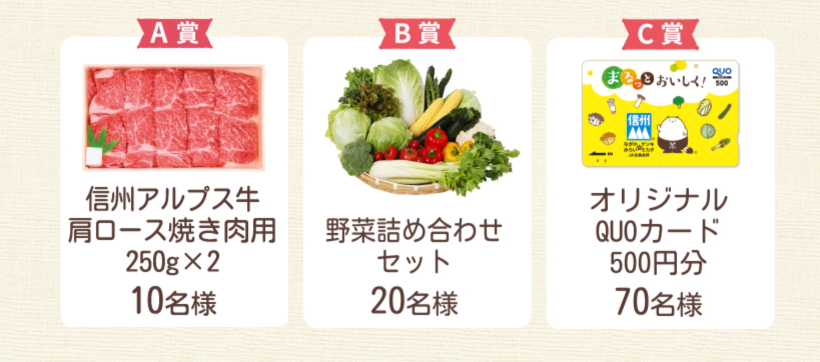 JA全農長野の「信州アルプス牛ロース焼き肉用250g」がもらえる!信州旬やさいキャンペーン 2020年8月20日(水)まで