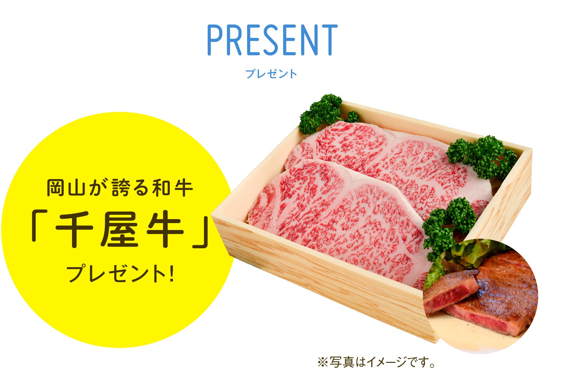 この新しいスタートを記念して岡山が誇る和牛「千屋牛(ちやぎゅう)」がもらえるキャンペーンが行われています。