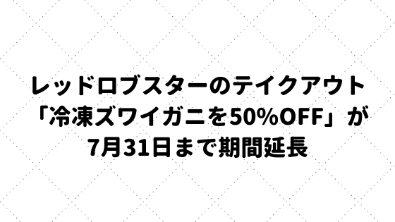 シーフードレストラン「レッドロブスター」のテイクアウトで高評価を受けている「冷凍ズワイガニを50%OFF」が2020年7月31日まで期間延長されます。