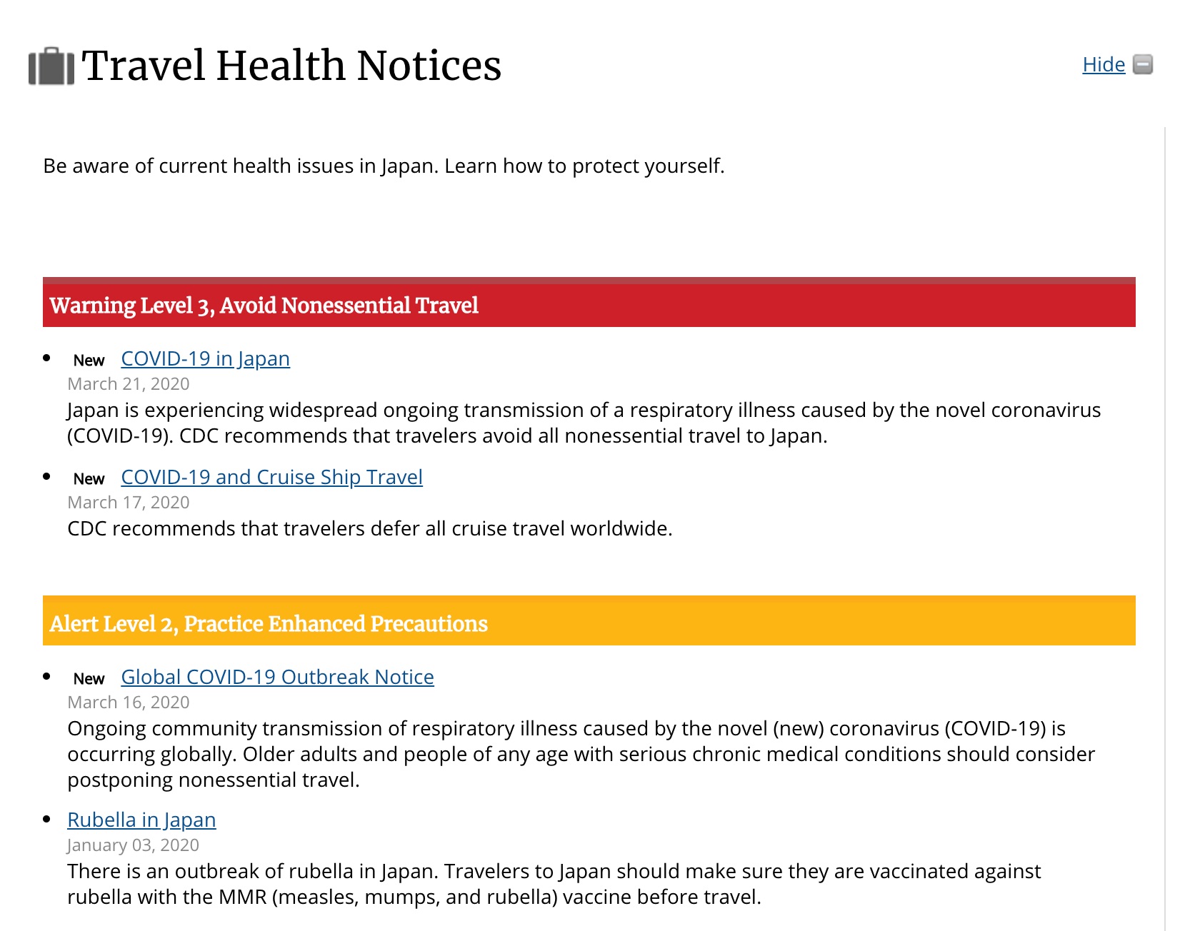 COVID-19 in Japan – Warning – Level 3, Avoid Nonessential Travel – Travel Health Notices | Travelers' Health | CDC