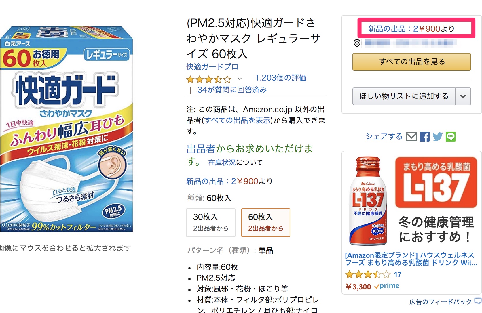 最寄りのドラッグストア以外にもAmazonや楽天でマスク価格チェックをしていると思われますが、