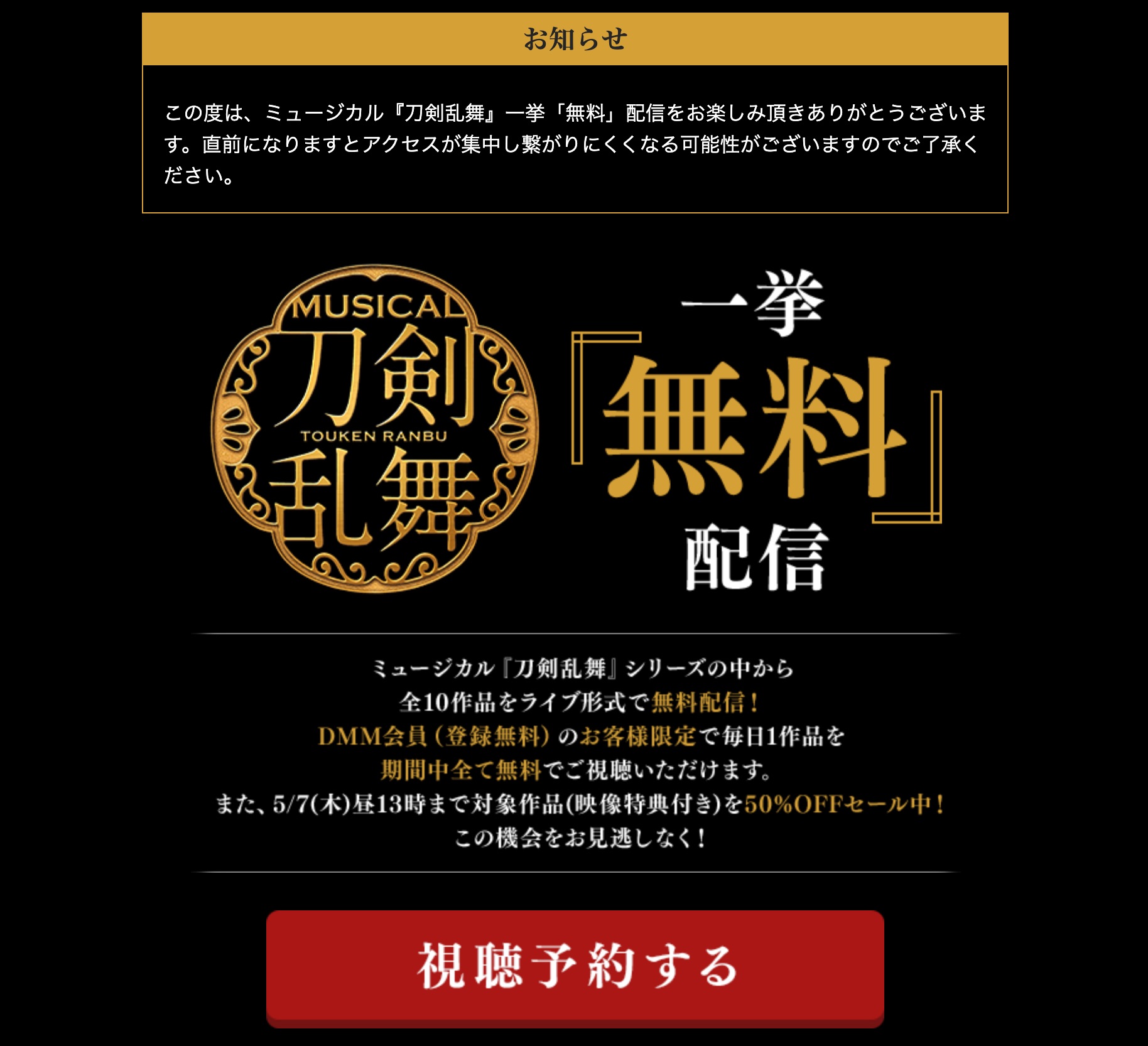 ミュージカル『刀剣乱舞』一挙「無料」配信 特設ページ – DMM.com 動画